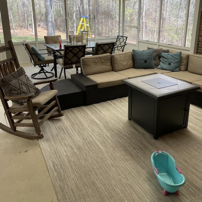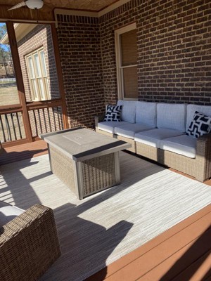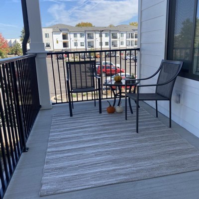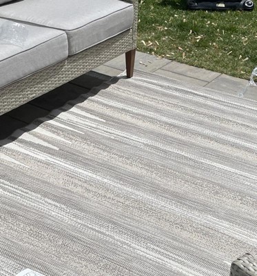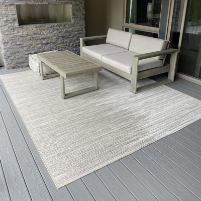 Add subtle style to your favorite seating space with this Ombre Outdoor Rug from Threshold™. Featuring an allover ombre print on a textured backdrop in a neutral tone, this outdoor area rug adds comfort underfoot while blending in easily with your existing decor. Plus, its flat construction accompanied by a backing makes it ideal for higher-traffic areas while being easier to clean and maintain.