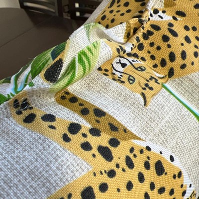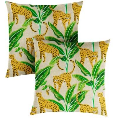 18"x18" Outdoor Square Throw Pillow Yellow/Green: Weather-Resistant, Tropical Jungle Cat Design