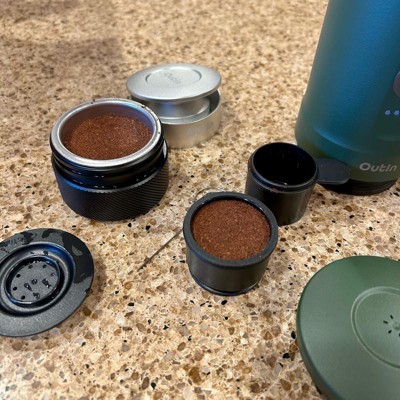 OutIn Nano Portable Espresso Machine Forest Green with Basket Plus Kit