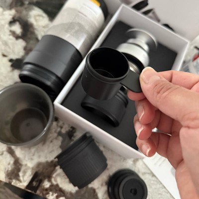 This kit is a great little gadget for coffee lovers like me that wants espresso even when I’m out of the house. It is surprisingly lightweight but still very powerful. It is easy to use once you get the hang of it, it took me a while to get the hang of it. Overall, it is a fun and practical little machine that gets the work done.