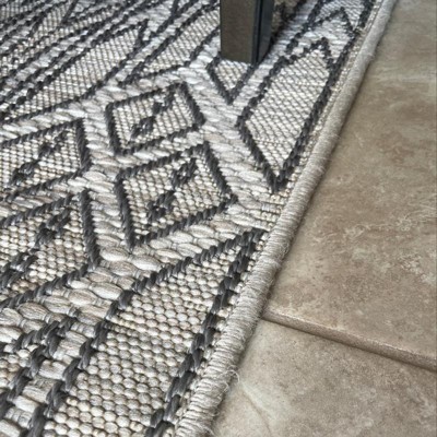 Spruce up your porch or patio with this Outlined Geo Pattern Outdoor Rug from Threshold™. This woven rug features a dark-outlined geometrical pattern on a neutral-color background, making it easy to blend with any decor style. It boasts fade- and UV-resistant fabric with quick-drying properties for convenient outdoor use, and the flat pile height makes the rug easy to clean whenever it needs a quick refresh.