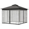 Outsunny Outdoor Patio Gazebo Canopy with 2-Tier Polyester Roof, Mesh Netting