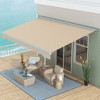 - Backyard Retractable Awning: When you open our retractable patio awning, you can sit outside in a cool spot free from glare. It's made of PA-coated polyester fabric, making it resistant to the elements and able to provide UV40+ sun protection.