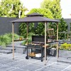 Transform your backyard into a BBQ haven with the Outsunny Grill Gazebo! Its 8' x 5' size creates a spacious grill gazebo with shelves suitable for entertaining. Enjoy a cooler cooking experience with the double-layer canopy that vents heat and resists flames and UV. Plus, handy side shelves and hooks keep essentials close in this grill shelter.