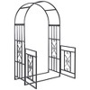 Outsunny Outdoor Metal Garden Arbor Arch with Double Gate, Weather-Fighting Dark gray Epoxy Coating, & Steel Construction