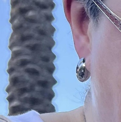 The picture on the website doesn’t do these earrings justice, they’ve got a much shinier silver surface than it appears. Essentially they’re 3D oval puffy huggies that look as great from the back as they do from the front. I love them, been wearing them constantly and they’re comfortable (with no burning or itching) and are holding up well. They aren’t heavy but aren’t airy-light either, that perfect middle weight, and feel durable for the price. Took me a minute to open them the first time (didn’t want to break them), but since then figured out that sliding a fingernail into the side opens them reasonably. Glad to see them restocked, just bought a second pair for backup!