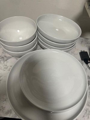 [This review was collected as part of a promotion.] I am in LOVE with this set! The soup bowls are the perfect mix of wide and deep for cereal, soup, etc. The salad bowls are just deep enough to keep the goodness in the bowl instead of on your table while still giving you a good amount of service area for toppings, etc. Both sizes of plates are lovely as well with a small rim. 100% will buy an additional set to have a full 8 pieces of each item.