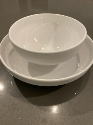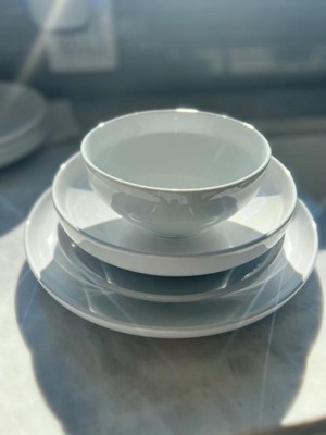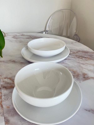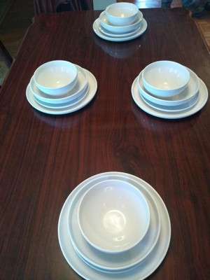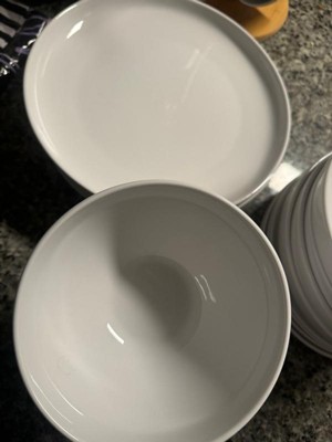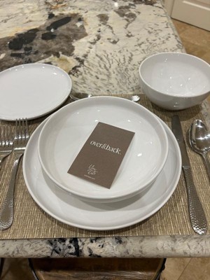 over&back 16pc Coupe Glossy Hand-Finished Porcelain Dinnerware Set White: Microwave & Dishwasher Safe, Service for 4