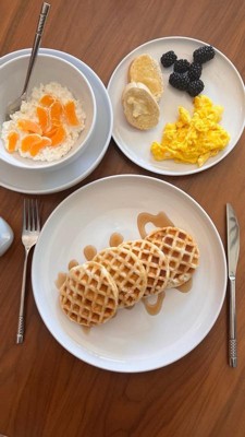 [This review was collected as part of a promotion.] I love this dinnerware set. It seems durable and well made. I like the design of the plates and bowls; it’s a bit unique in that regard. They were packaged quite well and arrived with nothing broken or chipped. They’re both dishwasher and microwave safe. Price point is good as well. Would definitely consider purchasing in the future.