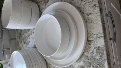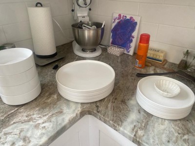 [This review was collected as part of a promotion.] I love how compact and durable these dishes are. They stack nicely and wash great. All I need to complete the set are mugs! These are our new "guest" dishes for when we have company over.