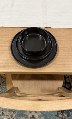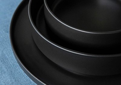 over&back 12pc Stackable Hand-Finished Stoneware Dinnerware Set Semi-Matte Black: Microwave & Dishwasher Safe, Service for 4