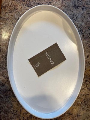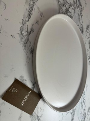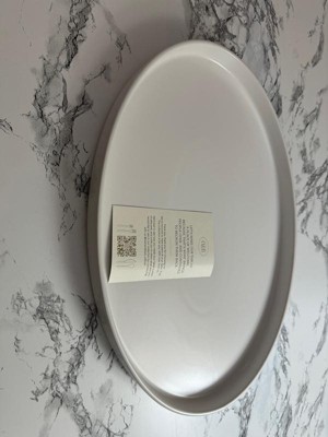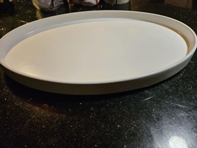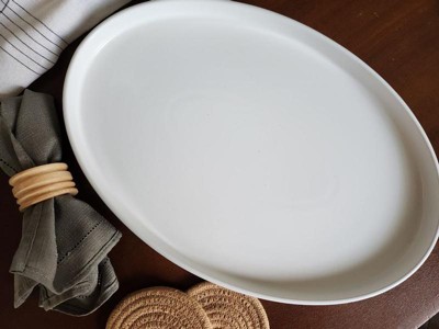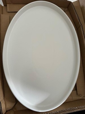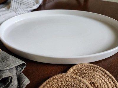 [This review was collected as part of a promotion.] This large white oval serving platter is awesome and can hold a variety of things from dinner to being used as a charcuterie board! The small lip helps keep and food or sauces from escaping. The design is chic and can match any set. I only have one so far but it says it is stackable which is great for storing.