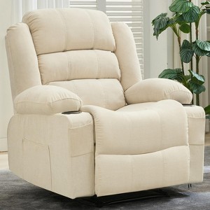 - [Chenille Fabric + Cozy Elegance]: Upgraded with soft, breathable chenille upholstery, this recliner is ultra-comfortable and family-friendly. It resists pet hair and everyday wear while adding a warm, inviting touch to your living room, bedroom, or reading nook. Side pockets and dual cup holders keep your essentials close for movie nights or lazy weekends