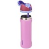 The Owala FreeSip Insulated Stainless-Steel Water Bottle with Locking Push-Button Lid easily tackles every thirst. With a built-in, easy-clean straw and a wide-mouth opening, the FreeSip reusable bottle is designed for drinking two different ways: sipping upright through the straw or tilting back to swig from the wide-mouth spout opening. Add in a push-to-open lid and playful colors, and staying hydrated has never been simpler—or more fun. Additional features include double-wall insulated stainless steel that keeps drinks cold up to 24 hours, a carry loop that doubles as a lock, a cup holder-friendly base, and a wide opening for easy cleaning and adding ice. The Owala FreeSip Insulated Stainless-Steel Water Bottle with Locking Push-Button Lid is available in three sizes: 16-Ounce, 24-Ounce, and 32-Ounce at Target. Lid is dishwasher safe; recommended hand wash the cup. Not for use with hot liquids. Manufacturer’s limited lifetime warranty.