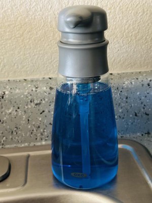 I absolutely love this soap dispenser bottle from Oxo. It is very high quality. My entire family can use it to clean the dishes. The bottle is clear so you can see how much soap is in there to fill it.