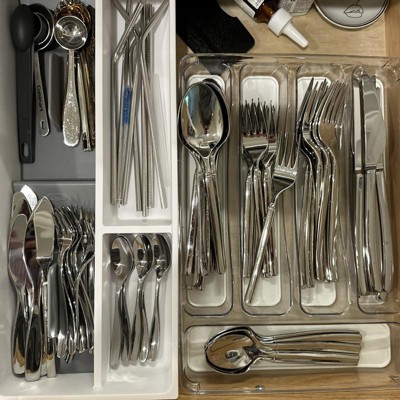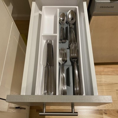 I LOVE this silverware organizer! I have 2 (yes, only 2) drawers in my kitchen. Space is beyond limited. This was a total impulse buy, one I found very reasonably priced even at full retail, and I killed it with this one. I had a regular wide organizer before that took up the entire width of the drawer but left me with dead space in front and back. But with this one? It uses that dead space since it's longer AND it gave me back half a drawer (I'm still wrapping my brain around that one)! You can remove the gray insert, making it 1 bigger compartment for bigger utensils instead of sectioned off for forks, etc. That also makes it totally rational to, ya know, buy 2 of 'em. I'm, obviously, a huge fan.