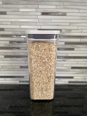 [This review was collected as part of a promotion.] I absolutely love this OXO Pop container. I eat oatmeal every morning and now have a great container to put it in. The container looks very neat and clean on my counter, so I feel comfortable leaving it there all the time. The fact that it is clear is a huge plus, because it’s very easy to see what’s inside, especially if you have multiple containers together. My favorite feature is the “pop” top. If I push the button down the container is sealed and the top cannot be removed. This helps keep the food fresher for a longer time. To open the top, I just push the button again and it unseals the lid. Overall this is a great food container to have.