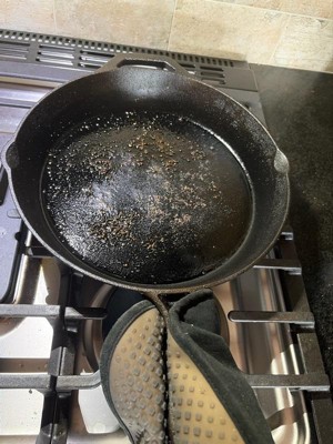 We use these everyday and they can handle almost any heat, including a piping hot cast iron! The perfect fit and we even have the matching mittens which are also great! The grip works amazing for any pans and I’m confident it won’t slide away from me when using these
