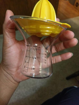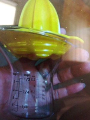 [This review was collected as part of a promotion.] I love to bake and in most of my recipes I use lime, lemon or oranges I always have to juice some and this is where this little juicer comes in handy. I have been using it to juice oranges for my recipes or to juice lemon for my morning drinks. I love that the cup has measurements. You can measure in cups, Tbsp, ml or oz. The top part is used to press the pulp and release the juice it also serve as a filter so what you get in the cup is only juice no pulp or seeds.