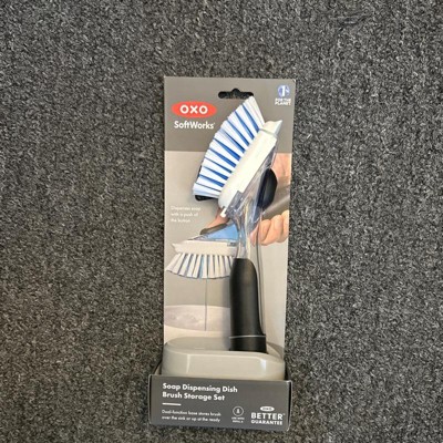 OXO Soap Dispensing Dish Brush Storage Set: Nylon Scrub Brush for Multi-Surface Cleaning, Black