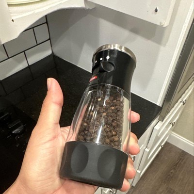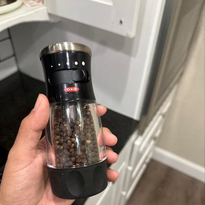 OXO Softworks Pepper Grinder: Black Refillable Spice Mill, Stainless Steel, Mess-Free Design, 5.65" Height