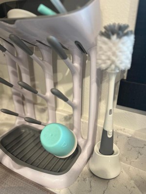 The OXO drying rack is highly praised for its space-efficient design, making it ideal for small kitchens and limited counter space. Guests appreciate its functionality, ease of cleaning, and ability to hold multiple bottles and accessories. The rack's vertical design and removable tray are standout features, though some guests noted challenges with cleaning intricate areas and fitting certain bottle brands.