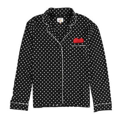 P.J. Salvage Womens Basic Button Down Pajama Tops, black, Small