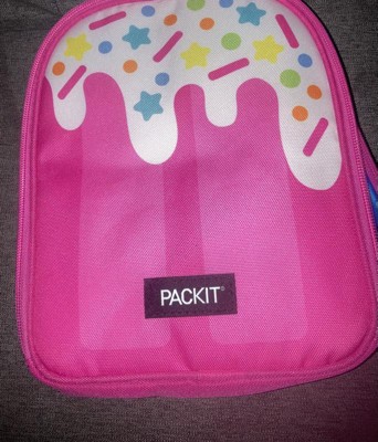 [This review was collected as part of a promotion.] Its the hottest months here in the South and my daughter needs to take an extra water and juice with her on the bus and to school. The PackIt Freezable Playtime Lunch Box works perfect. He water and juice stays cold all day long.
