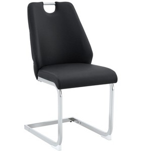 PAGED Dining Chairs Set of 4, Faux Leather Dining Room Chairs, Kitchen Chairs with Silver Back Ring and Chrome Pull Handle for Kitchen