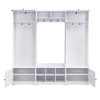 Product Name: PAGED Hall Tree with Bench and Shoe Storage, Modern Coat Rack with 7 Hooks and Top Cabinet Doors, Entryway Hat Rack for Mudroom, Living Room, White