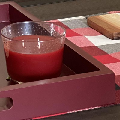 This tray is great quality, well made and looks great. However the color we purchased is listed as “red” and it is not red. I would describe the color as somewhat of a burgundy and much more muted than the vibrant red image featured. Target customer service was excellent in issuing a refund and handling return. I just think descriptive color needs to be changed or people should be made aware through reviews that the color of different. I added a photo with red candle and red checked table runner for comparison.