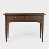 Elevate your home decor with this Palma 46-Inch Arched Console Table from Threshold™ designed with Studio McGee. Featuring a hardwood frame, this console table boasts a dark brown finish that easily integrates into your existing decor scheme, and it has a rectangular tabletop complete with an arched skirt for a standout look. The smooth top lets you showcase framed photos, potted plants and more, and the two pull drawers underneath provide hidden storage for stashing away small items.