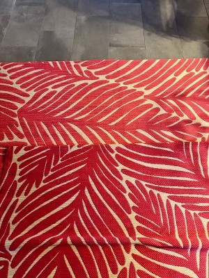 A: The rug features a seamless palm frond pattern, adding a tropical vibe to your outdoor space.