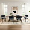 Transform your formal dining area or open-concept gathering space with the Panipeachy Set of 6 Contemporary Dining Room Chairs. Designed for large families and frequent entertainers, this bulk seating collection brings a sophisticated, airy aesthetic to your home. The defining feature is the modern floating open-back design, where the curved "C-shape" backrest is elegantly separated from the seat by a sturdy black metal frame, creating a visually light and spacious look. Unlike standard narrow seats, these upholstered dining chairs boast an extra-wide 20-inch seat, providing generous room and superior comfort for guests of all sizes. Wrapped in a premium, breathable textured woven fabric (linen-blend look), the cushions offer a soft touch while remaining durable enough for daily use as kitchen chairs. The ergonomic curved back wraps gently around the body for lumbar support, while the armless silhouette allows for easy movement and versatile placement. Supported by slender yet robust matte black metal legs, these side chairs are stable, wobble-free, and equipped with adjustable foot pads to protect your floors. Whether for holiday dinners or casual brunches, this set delivers style and function. Overall dimensions: 21" W x 19.0" D x 32.0" H.
