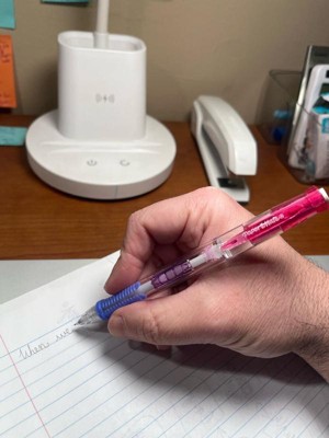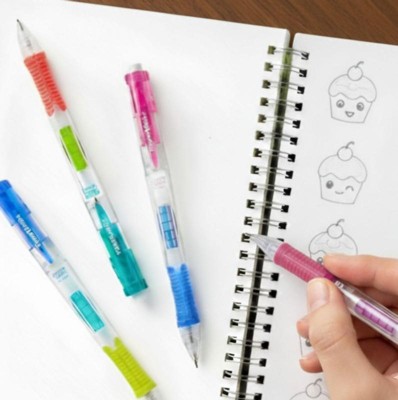 [This review was collected as part of a promotion.] Haven't used a mechanical pencil in so long and these new ones are so comfortable to hold. It's sturdy and easy to click the lead out. The lead itself writes smoothly and doesn't break easily. It erases well. The rubber grip is good quality. The colors are bright and attractive. Price point is affordable.