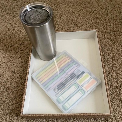 [This review was collected as part of a promotion.] This paper letter tray feels nicely made and has a nice design aesthetic to work in different office settings. The woven pattern gives a warmth yet it is neutral enough to go with different color palettes. It is a good size to use obviously for paper or other items to aid in organizing surface spaces. We tend to have lots of clutter and this is a nice way to tidy it up!