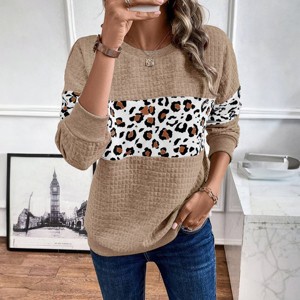 Parchment Leopard Quilted Patchwork Crew Neck Sweatshirt