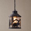 This bear light pendant will perfectly blend in a rustic farmhouse or lodge cabin home with its lovely forest and bear cutouts. Unique bubbled glass with punched pinecone detailing and stylized paintbrush strokes in a black finish. With 3 feet of adjustable chain combined by 7 feet of cording and a coordinating ceiling plate, this suspended light pendant can be easily hard wired to any desired ceiling. Pair this ceiling light with a 60 Watt bulb for full effect, not included.