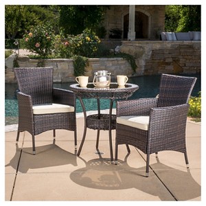 Parker 3-Piece Wicker Patio Bistro Seating Set with Cushions - Brown - Christopher Knight Home: Resin, Metal Frame, Weather-Resistant