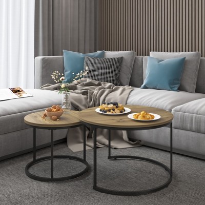 Parker Nesting Table Set Brown - ClickDecor: Sturdy Metal Frame, Rustic Wood Top, No Assembly Required
