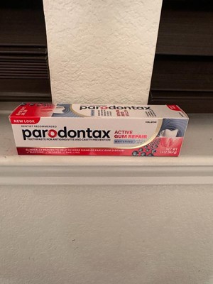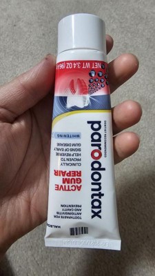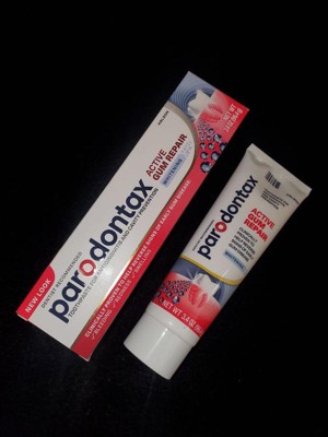 - Two 3.4 oz tubes of Parodontax Active Gum Repair Whitening Toothpaste