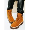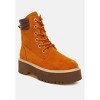 The high ankle boots are made with premium quality suede which gives them a polished and premium look, while the construction has a unique flair with the addition of the quilted collar which contrasts the overall design. The boots have a low block platform heel which is comfortable while the soft cushion insoles cut strain. The lace up design of the stylish ensures a snug fit. Type: Boots Upper Material: Suede Outer Sole: TPR Closed Round Toe Low Block Platform Heel Quilted Collar Detail Lace Up Design Lug Soles Pull Tabs Comfortable Cushion Insoles Heel Height: 2 inches RCSH5816
