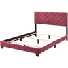 - Deep tufted upholstered headboard and footboard with soft velvet cover with jeweled tufting and chrome nails head