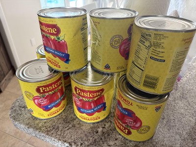 Living in Arizona however being Italian from Boston's North End this is how to use the tomatoes for the sauce you can not buy. Begin with a huge stainless steel pot. At least 3 gallon. Dice a big yellow onion and chop at least 3-4 garlic cloves. Put 1/8 inch olive oil in the pot, put the onions and garlic into pan. Simmer on low heat until you smell the aroma. Add one small can of tomato paste and 14 ounces of water per each can of kitchen ready tomatoes you are going to use. We use 6 cans of tomatoes and 6 cans of paste. Stir vigorously with large wooden spoon until the paste is soupy. Add the rest of the tomatoes and 6 more ounces of water per cans of tomatoes. Add per taste a little parsley, basil, garlic salt, onion salt, regular salt and 4 tablespoons of sugar. The sugar cuts the acid of the tomatoes. Low heat for 6-7 hours stirring every I/2 hour. Add cooked meatballs, chicken, sausages and pork. after the time you set, turn off heat, cover the pan and let sit overnight on the cooktop. In the AM uncover and again simmer for 3-4 hours. It's done!!! We use the sauce that day and individually freeze the remaining in plastic containers for 8-10 more meals. ( Una vera bonta!) Divinely good.