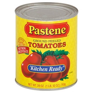 Kitchen ready (Copyright 1965). Packed from fresh tomatoes. Not from concentrate. A traditional of quality since 1874. Pastene kitchen ready tomatoes. Pastene Kitchen Ready tomatoes are 100% packed from fresh tomatoes, not from concentrate. Many canned tomatoes are packed in a process where water is added to bulk tomato concentrate (a.k.a remanufactured tomatoes). On their ingredient labels you will see water and concentrate listed. Pastene Kitchen Ready tomatoes are always packed from vine-ripened fresh tomatoes, canned as soon as the ripe tomatoes come in from the field. This fresh-pack method results in the best, most flavorful canned tomatoes available. For over 50 years, Pastene Kitchen Ready tomatoes have represented the highest quality in canned tomatoes. We are committed to keeping Pastene Kitchen Ready tomatoes the quality leader. Thank you for using our product! Pastene Pure - Chef's choice. Preferred by Chefs: Sweet and flavorful, Pastene Kitchen Ready Ground Peeled Tomatoes are ideally suited for preparing sauces, soups and stews. Their fragrant tomato aroma will make your omelets, gravies and casserole dishes more appetizing. Gluten free.