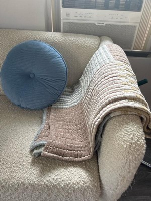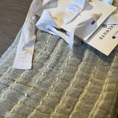 Perfect weight for these warmer months. I love the mutated tones and patterns of this blanket. I am a huge fan of Parachute and most of my linens in our home are from them. I was curious if the quality would be similar being a line with Target.. but I would say yes! A thin knit like this will always pull but I am okay with that and love the texture.