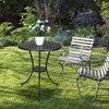 Bistro Table, Round Cast Aluminum Dinning Retro Table with 2 Inch Umbrella Hole, Pub Height Bistro Table for Porch, Backyard, Garden, Balcony