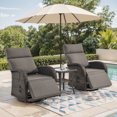 - 【Outdoor Lounging Chair Set】 - Sink into supreme relaxation with 5-position adjustable backrests and plush 5-inch thick cushions; the perfect Outdoor Reclining Chair Lounge Set for finding your ideal position, from upright reading to flat sunbathing, with added support from included lumbar pillows.