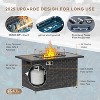 - 🏡【ETL Certified Safety Fireplace Table】The dual-purpose firepit table with lid can be used not only as a decorative fire table, but also as a coffee table for daily meals. And it provides 50,000 BTU of heat in cooler weather. Stainless steel burner with glass windguard and an anti-leakage safety valve for improved combustion safety and stability. It turns your outdoor living space into a cozy oasis.