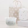 This 11 oz 100% soy wax jasmine tranquility-scented candle fills an organic-shaped ribbed ceramic vessel that will fit into modern neutral-styled homes. The double lead & nickel-free cotton wicks provides a smooth burn when each wick is cut down to 1/4" after burning. The candle will burn for 27-30 hours in total. Once the candle has burned away, repurpose this as a jar to hold keys or desk items such as paper clips, push pins, or pens. Even reuse as a bathroom cotton ball, q-tip, toothpick, or bobby pin holder; coin & change holder too. . The new & innovative candle offers a unique message for your loved one within the wax as time progresses. You will see cursive written "Beyond Blessed" sentiment after about 10 minutes. As you watch, the entire decal will appear after 60 minutes. Then, the message will hide again and reappear with each burn. The front of the candles has a simplistic "Count Your Blessings" decal accompanied by an Ombre white & gray pattern. Wipe clean with a damp cloth. Always take care around an open flame. They are packaged securely in a die-cut box for safe shipping with a protective wax cover to remove before lighting, which provides a preview of the inner wax reveal. Three soft foam feet on the aromatherapy candle's round bottom will protect furniture surfaces. This dish is microwave, dishwasher & food-safe once the candle has been removed from the vessel.